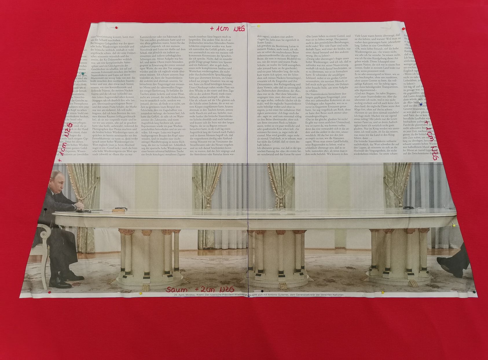 Als nächstes müssen wir noch den Bund zuschneiden. Da ich nicht über lange Strecken total gerade schneiden kann, habe ich mir dafür auch ein Schnittmuster aus Zeitungspapier gebastelt. Der Bund wird genau so lang zugeschnitten wie dein Taillenumfang plus 2 x 1 cm Nahtzugabe. Bei einem Taillenumfang von 70 cm ist dein Bund also 72 cm lang.